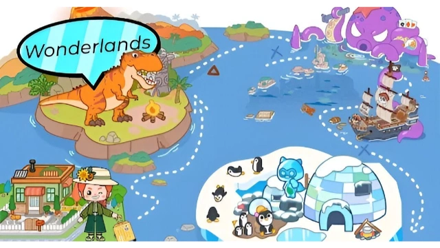 Experience The City and all its bustling fun! Cook in style at the revolving restaurant, keep the streets clean at the Police Department, or take a relaxing walk in the city park. Outside The City, more adventures await! Ever wanted to explore a medieval Viking town? A magical dragon island? Play dinosaur games in a Jurassic park? In Aha World you can do and be anything. Come and unlock the hidden mysteries and secrets across all the locations. Aha World's building games and dress up dolls mean if you can dream it, you can make it!