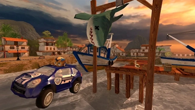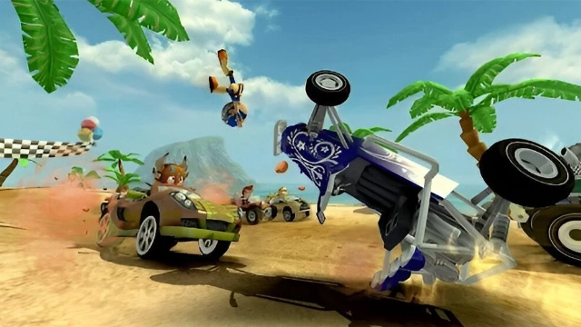 Drive into an action-packed, surprise-filled world of off-road kart racing mayhem! Race against a field of rival drivers, each with unique personalities and special abilities. Build a collection of crazy powerups, like Dodgeball Frenzy, Fireball, and Oil Slick. Unlock and upgrade a variety of cars, from dune buggies to monster trucks. Test your skills in 6 different game modes on 15 imaginative 3D race tracks, against a pack of tropical-loving rivals with a serious case of road rage!