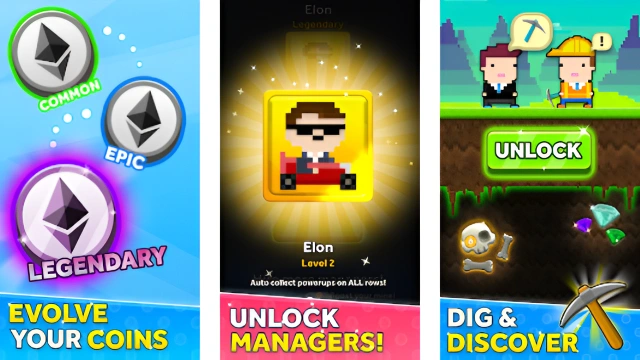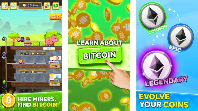 Become the ultimate bitcoin mining tycoon by tapping to mine dummy versions of popular crypto currencies in this fun idle clicker.