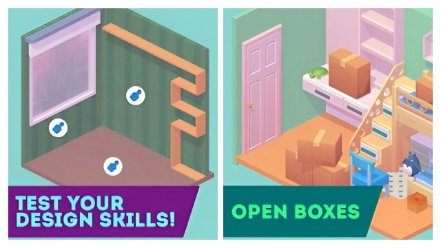 • Outside the box: Decor Life is a game that follows the renovation process from start to finish. Begin by sorting the furniture and contents of the old, unrenovated room into the right boxes, before moving on to selecting home design options, unboxing and placing furniture, then finally unpack and arrange new decorative items and possessions in the redecorated room.