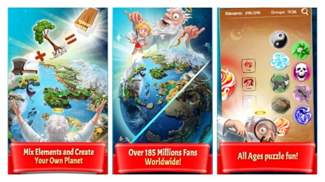 In this addictive, ALL ages, puzzle game mix and match different combinations of fire, earth, wind and air to create an entire universe! As you create each element watch your world come alive as each element animates on your planet. The new “Planet” mode offers a new challenging way to create a universe of your dreams.