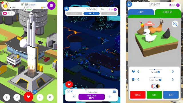 An incremental (clicker) game at its core, Egg, Inc. uses many elements from simulation games that give it a unique feel and play style. Instead of menus, you are presented with crisp and colorful 3D graphics and a delightful simulation of a swarm of chickens. In addition to choosing your investments wisely you must also balance your resources to ensure a smooth running and efficient egg farm.