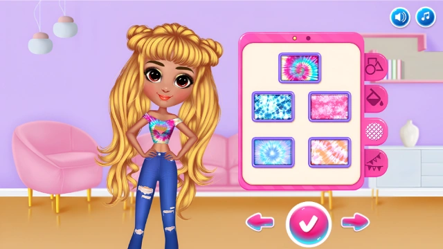 Holi Tie Dye is a delightful dress-up and design game where players can unleash their creativity by customizing tie-dye crop tops for Sunny, Skyler, and Ruby. Choose from various crop top models, experiment with vibrant colors and patterns, add fun inscriptions, and complete the look with stylish skirts or shorts. Show off your design skills and create the perfect outfit for the holiday festivities!