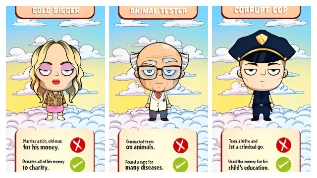 - Scroll right or left to send them to heaven or hell