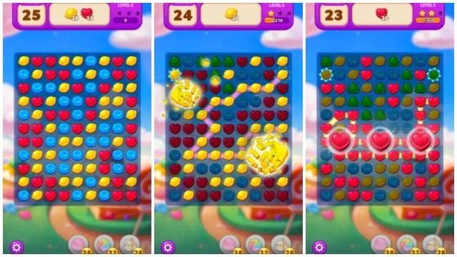 Indulge your sweet tooth with this addictive lollipop link puzzle! Connect 3 or more candies to collect the tasty treats. But don’t stop at 3 - connect as many candies as you can! Connect 3 or more treats of the same color in ANY direction: upward, downward, diagonally…The possibilities are endless! Match as many as you can to make combos and get special boosters!