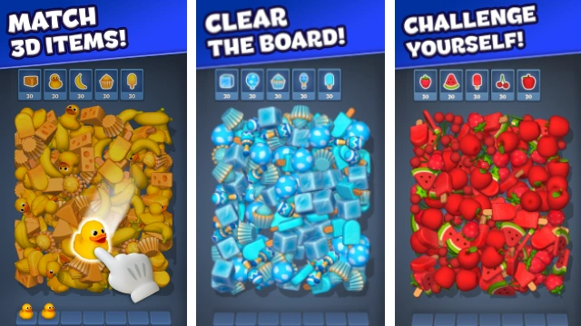 Connect identical items, sort tiles, and clear the board in this mesmerizing match 3D game. Challenge your puzzle-solving skills as you keep sorting and matching objects until every item is cleared from the screen. It’s not just a puzzle; it’s a test of your wit and strategy.