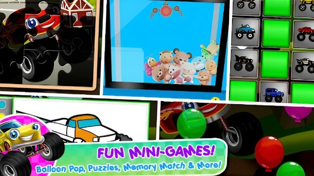 Monster Trucks Kids Game helps your child understand the educational mechanics of using mobile and tablet devices. with puzzles, memory card and heaps of fun racing action.