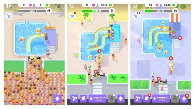 Challenge yourself trying to avoid long queues with angry people - it’s your chance to upgrade all your management skills. Make your aquapark business work the way you want it to! Dive into the game now and build, expand, and manage your own water park empire. Create unforgettable experiences for your guests and watch the entire business grow while you’re relaxing!