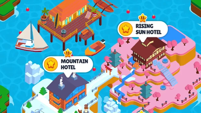 • Build an empire: There are several hotels to explore and expand, each with dozens of different unique upgrades to make before you reach five-star perfection. Demonstrate your competence as a manager in each location, then get promoted to get a new and bigger property, and continue your path to becoming a true hotel tycoon. Each hotel has its own style and atmosphere too.
