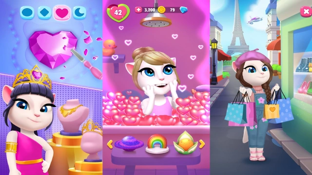 "My Talking Angela 2 is the virtual pet game that makes every day more stylish and fun. Players help this fashionable cat stay busy in her big-city home. - Awesome hair, makeup and fashion choices - Epic activities, like dancing, baking, and martial arts - Delicious food and snacks - Jet-setting travel options - Mini-games and puzzles test skills and reflexes - All-new sticker collections From Outfit7, creators of the hit games My Talking Tom, My Talking Tom 2 and My Talking Tom Friends. This app contains: - Promotion of Outfit7's products and advertising; - Links that direct customers to Outfit7’s websites and other apps; - Personalization of content to encourage users to play the app again; - YouTube integration to allow users to watch videos of Outfit7's animated characters; - The option to make in-app purchases; - Items to purchase (available in different prices) using virtual currency, depending on the player’s progress; - Alternative options to access all functionalities of the app without making any in-app purchases using real money."
