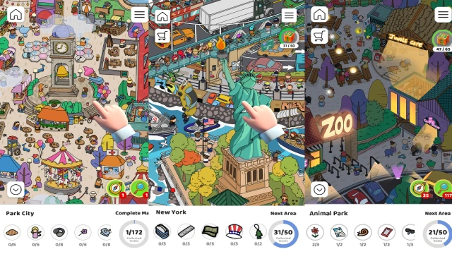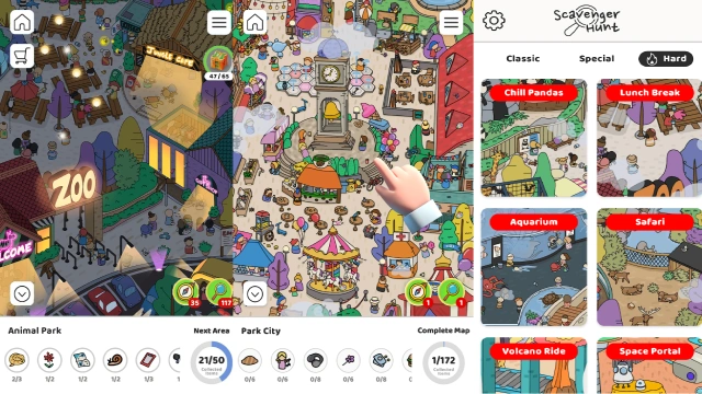Search and find games have never been this fun! Collect hidden objects throughout the maps on your journey to unlock more locations in the Scavenger Hunt! Hidden pictures are everywhere - under a tree, next to granny, on the roof? Zoom in and swipe through the map to collect all the hidden objects.